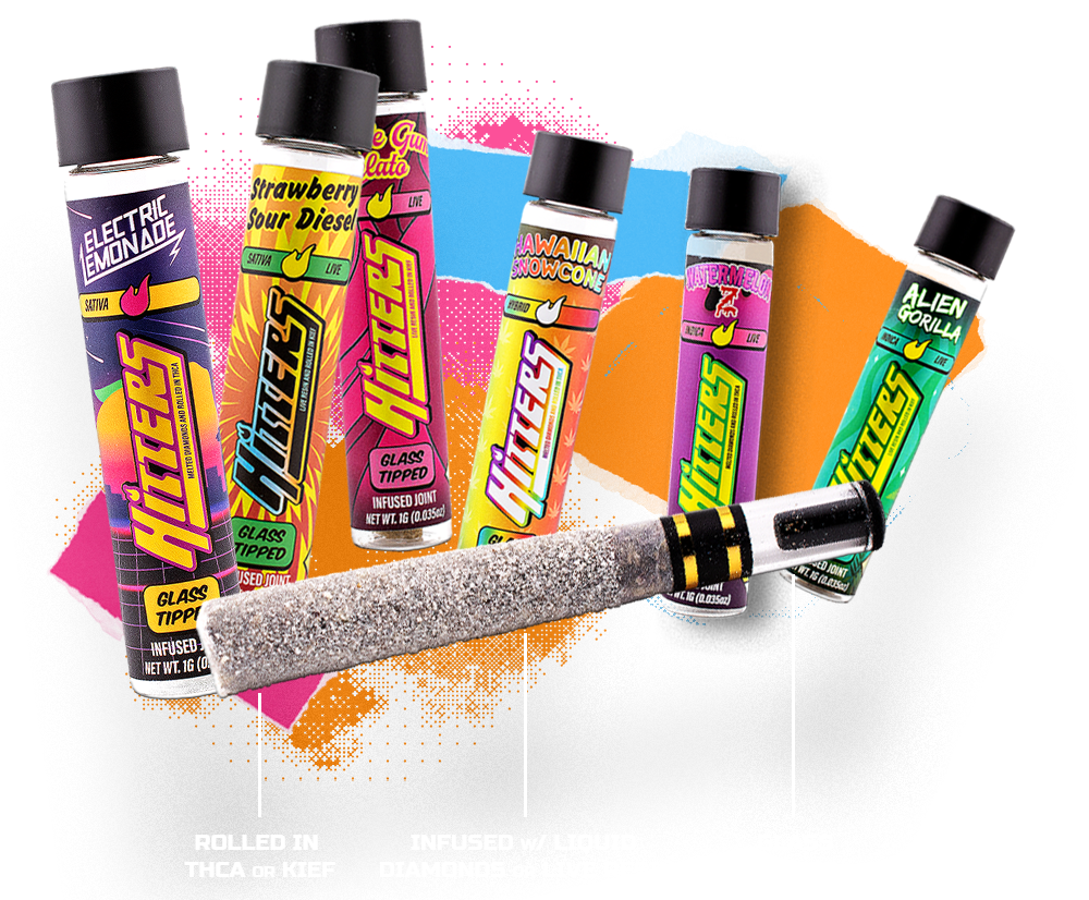 Hitters singles are the ultimate glass-tipped infused pre-roll, packed with premium flower, infused with Live Resin or Liquid Diamonds, and rolled in Kief or THCa for an ultra-potent, flavorful smoke. Designed for those who demand top-tier quality, each Hitters joint delivers a smooth, powerful, and terpene-rich experience with the added luxury of a glass tip for enhanced airflow and purity.